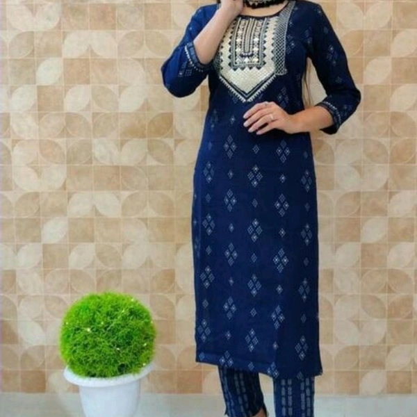 Alluring Women Kurta Sets Rayon Short Sleeves,Three-Quarter Sleeves
