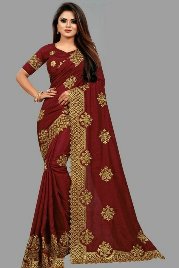 Saree Fabric: Dola Silk Blouse: Running Blouse Blouse Fabric: Dola Silk Pattern: Embroidered Blouse Pattern: Embroidered Multipack: Single Sizes: Free Size (Saree Length Size: 5.5 m, Blouse Length Size: 0.8 m)