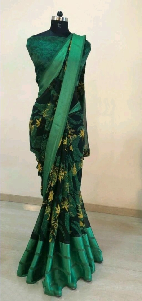 Georgette satin patta Printed Saree With Blouse