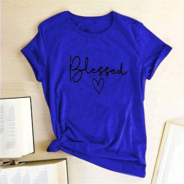 Printed Women Round Neck Indogo T-Shirt