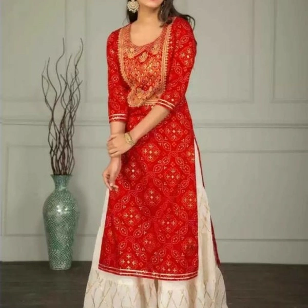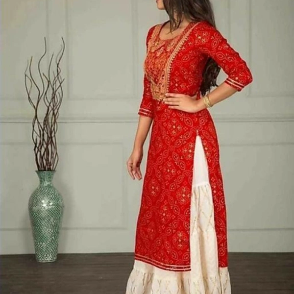 Women's Printed Party Wear Kurta Set with Sharara Bottomwear Rayon